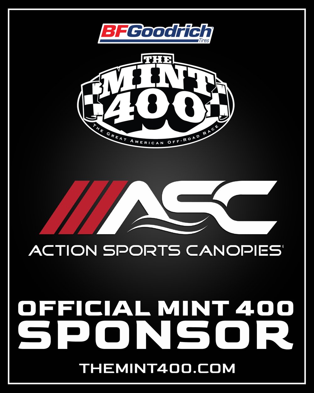 Action Sports Canopies returns as a Sponsor of 2026 BFGoodrich Tires Mint 400